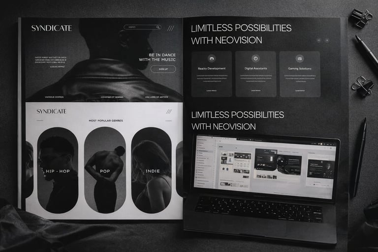 Nous créons et imaginons des sites web sur mesure, pensés comme de véritables vitrines digitales pour votre univers artistique. Chaque design est conçu avec soin afin de refléter votre identité, captiver votre audience et offrir une expérience esthétique et immersive.